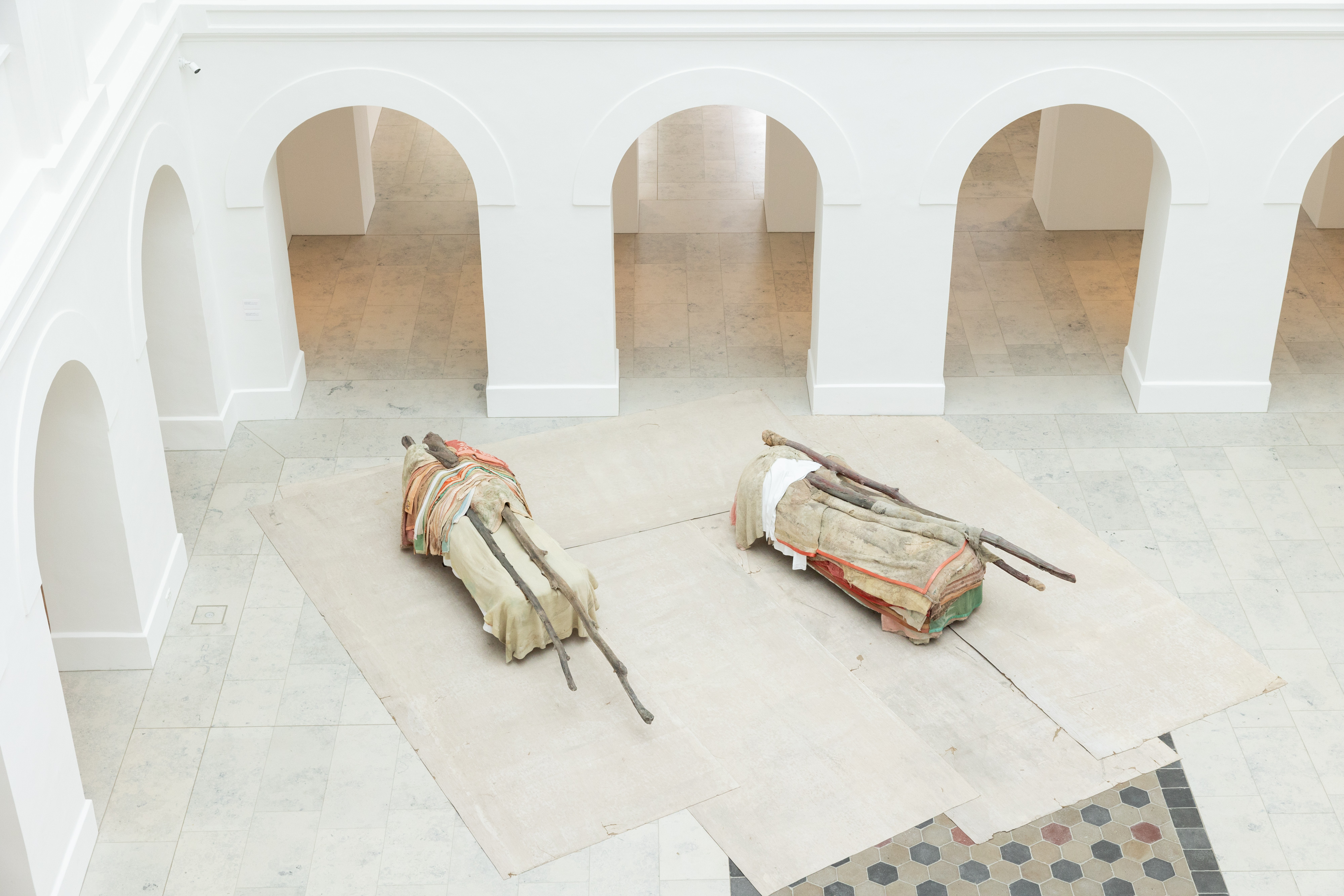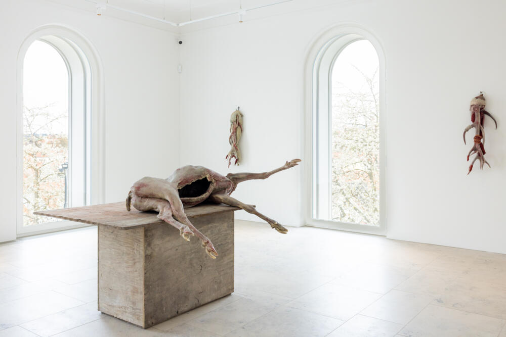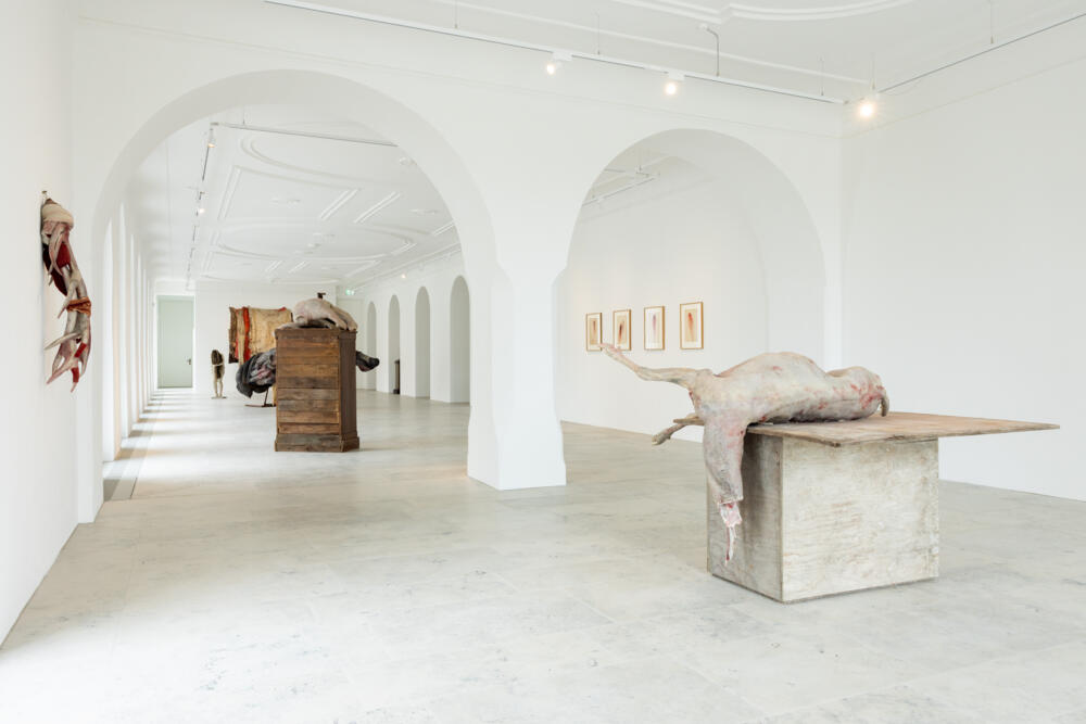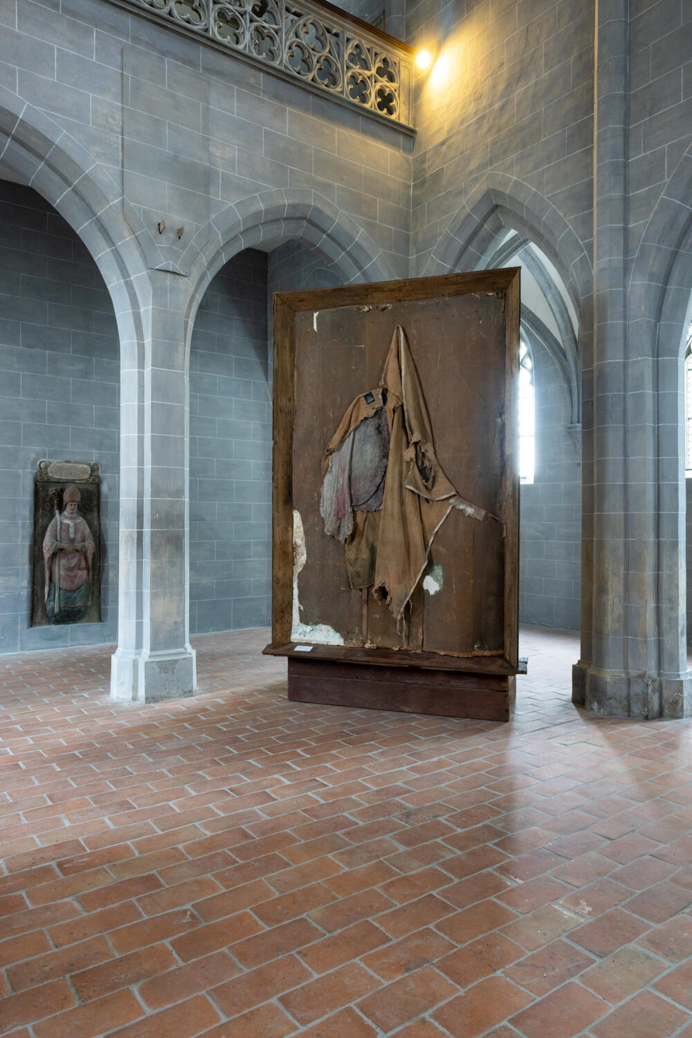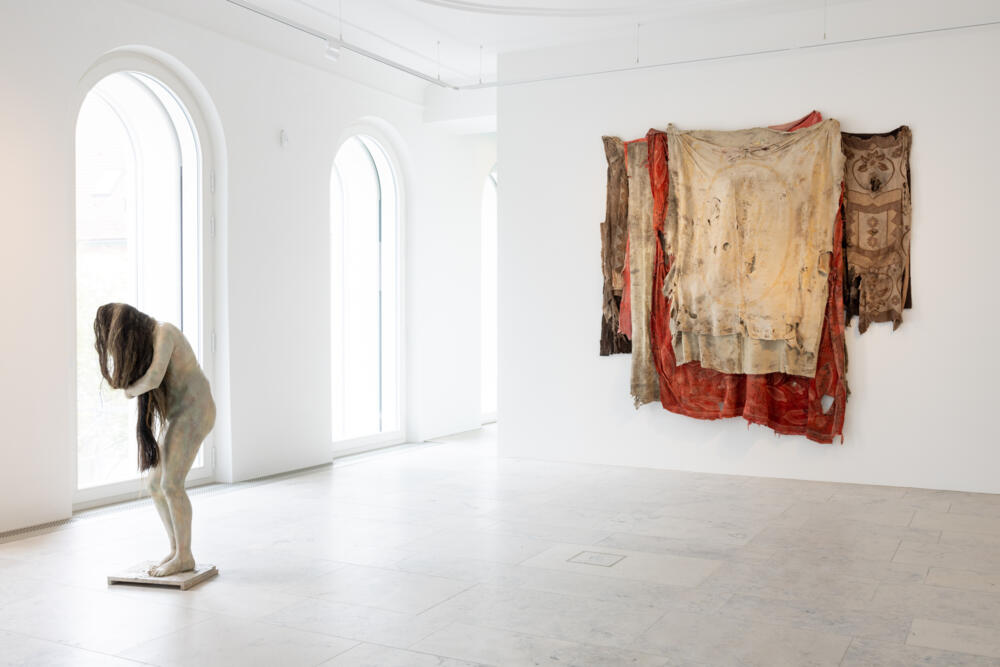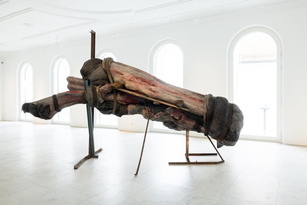 In 2022 Berlinde De Bruyckere created Arcangelo (Freising), 2021-2022 for the reopened Diözesanmuseum Freising, a monumental, yet touching sculpture of a bronze angel covered in lead patina. Surpassing humans by far and yet approachable the Arcangelo fills the atrium with its presence. Around this mysterious angel, the Diözesanmuseum now presents an exhibition by the Belgian artist in the adjacent halls, reflecting on the museum’s rich historical collections and the history of the building itself. The figure of the Arcangelo, developed during the first Covid lockdown, is inspired by the care givers in hospitals, dedicating themselves to nurse those dying in solitary confinement.